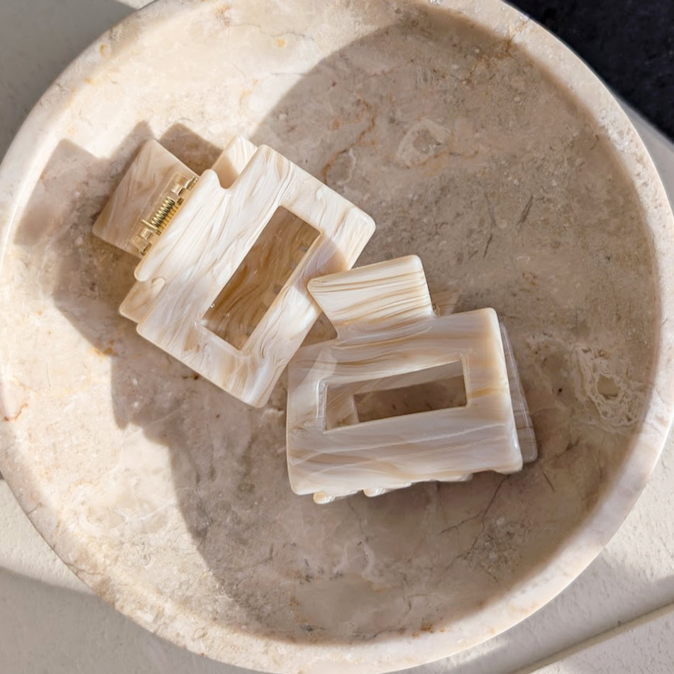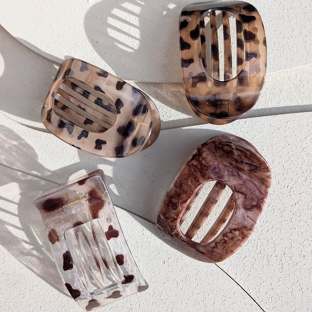 Een groot deel van onze haarklemmen is gemaakt van sterk metaal of cellulose acetaat, een heel sterk materiaal dat wordt gewonnen uit bijvoorbeeld vezels van hout en katoen en is daarmee een stuk milieuvriendelijker en duurzamer dan plastic of andere synthetische materialen.
