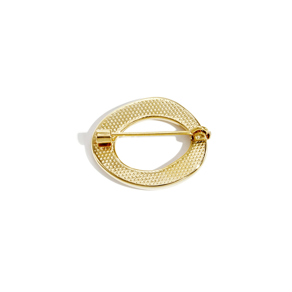 Deze elegante goudkleurige broche met organisch ovaal design geeft je blouse, trui of jurk net even een leuke, subtiele touch. De broche is gemaakt van hoogwaardig stainless steel (roestvrijstaal) materiaal dat niet verkleurt.