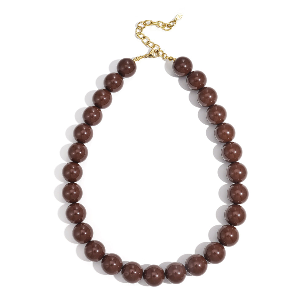 Deze mooie ketting met ronde kralen in een mooie warmbruine tint geeft je outfit direct een elegante, krachtige en moderne uitstraling. Mooi om solo te dragen als statement piece of te combineren met andere sieraden voor een layered look. Het goudkleurige kettinkje zelf is gemaakt van hoogwaardig waterproof, nikkelvrij en hypoallergeen stainless steel (roestvrijstaal) materiaal dat niet verkleurt.