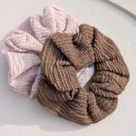 Deze koffiebruine rib scrunchie is een echte musthave! Het zachte, geribbelde materiaal voelt heel comfortabel aan en houdt je haar stevig op zijn plaats zonder te trekken of te beschadigen. Fijn voor dagelijks gebruik en ook stijlvol genoeg om je look net dat beetje extra te geven.