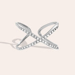 Deze zilverkleurige ring heeft een elegante X-vorm en is subtiel versierd met sprankelende kristallen. Het open design zorgt voor een lichte, moderne uitstraling en is mooi voor zowel alledaagse looks als speciale gelegenheden. De ring is gemaakt van hoogwaardig nikkelvrij, waterproof en hypoallergeen stainless steel (roestvrijstaal) materiaal dat niet verkleurt.