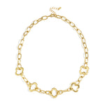 Laat elke outfit stralen met deze mooie goudkleurige ketting met schakels met subtiele klavervormige details. Mooi te dragen op zichzelf of te layeren met andere kettingen voor een moderne look.