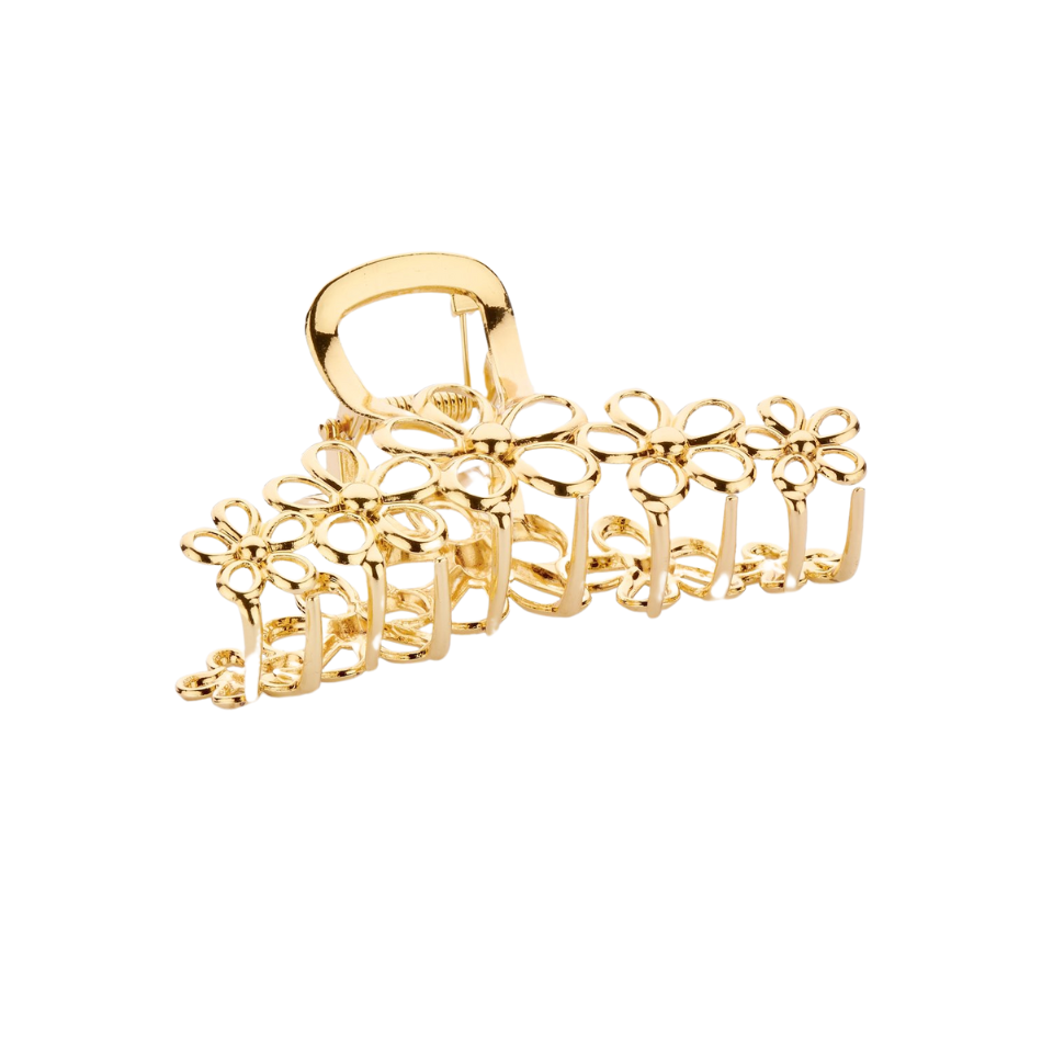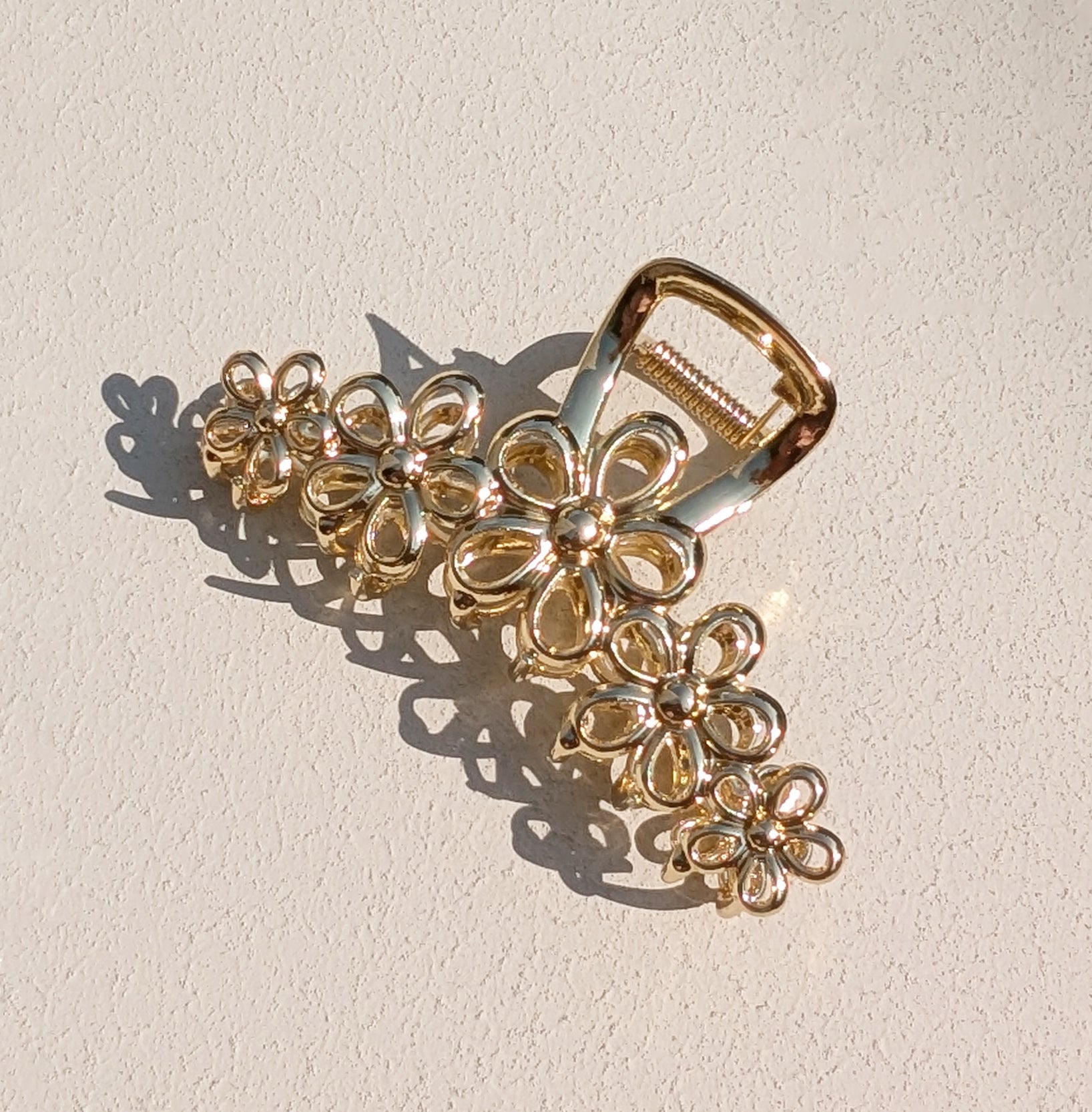 Wat dacht je van deze prachtige goudkleurige haarklem met bloemetjes!