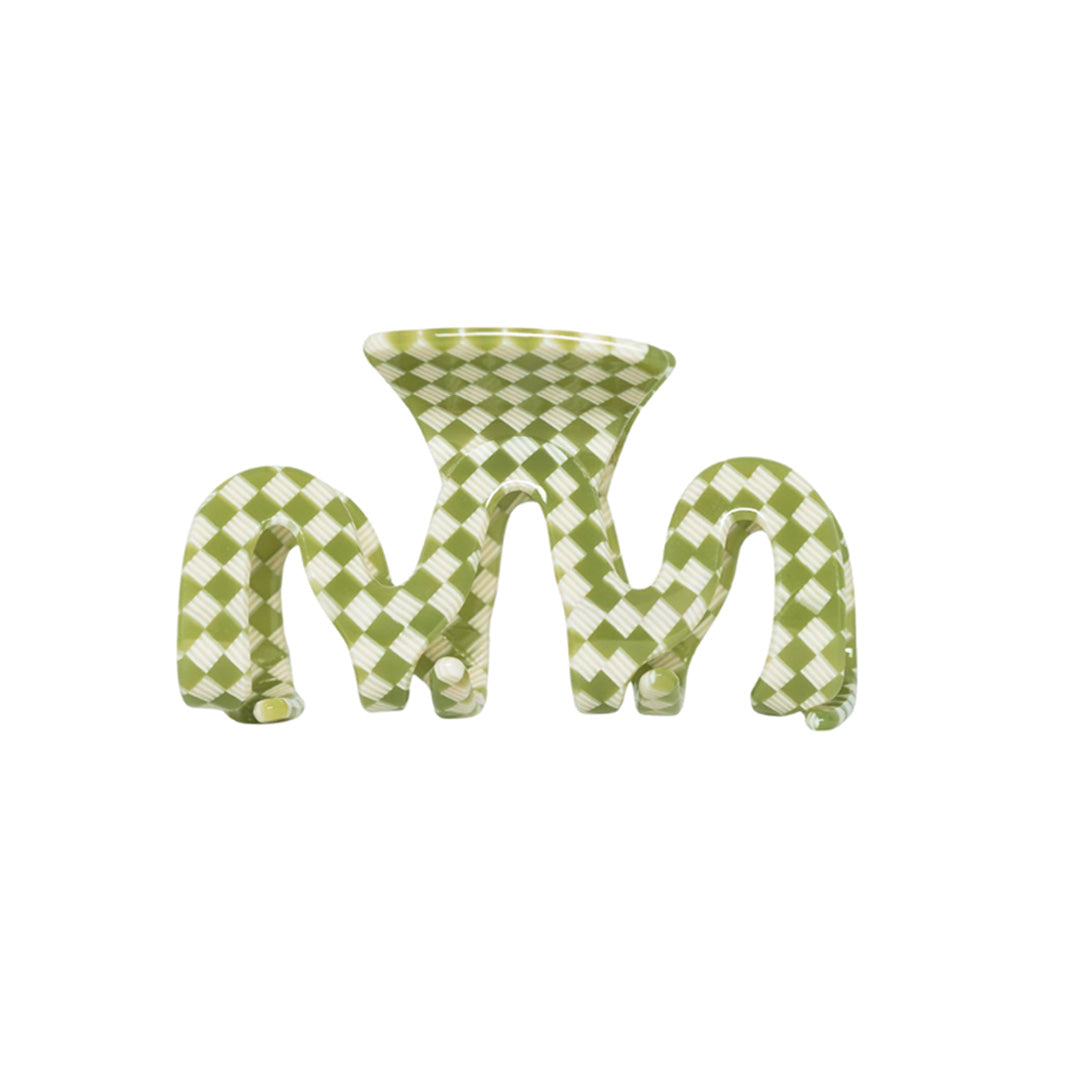 Wat dacht je van deze prachtige haarklem met modern golf design en gaaf geblokt wit/groen golf patroontje!