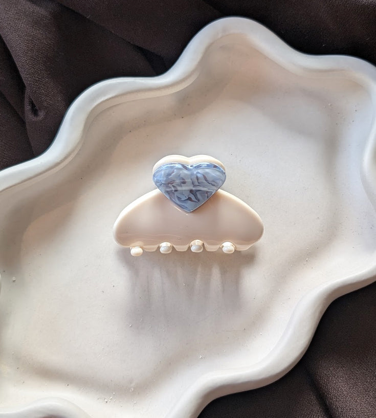 Natuurlijk is het dan wel zo leuk als je een mooi en bijzonder exemplaar draagt toch, zoals dit wat kleinere haarklemmetje met een mooi blauw hartje.