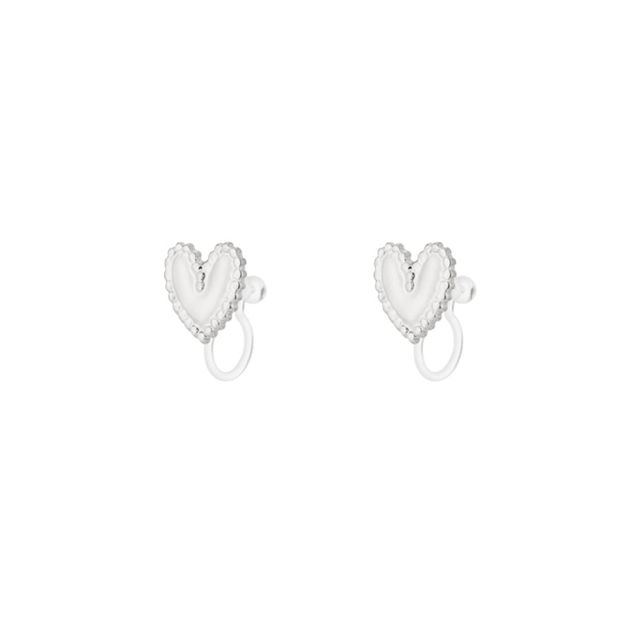 Voeg een vleugje liefde toe aan je look met deze elegante zilverkleurige hartvormige clip oorbelletjes. Dankzij de clip sluiting zijn deze oorbelletjes geschikt voor iedereen, zonder gaatjes of met gevoelige oren. Draag de oorbellen solo voor een subtiel accent, of combineer ze met andere sieraden voor een statement look.
