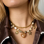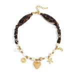 Hoe superleuk is deze ketting met een combinatie van luipaardprint stof, gouden details en bedeltjes in de vorm van een hart, zon, maan en ster, een echte eyecatcher! Leuk om te dragen op zichzelf of te combineren met andere sieraden voor een layered look. De goudkleurige ketting is gemaakt van premium hypoallergeen, waterproof en nikkelvrij stainless steel materiaal dat niet verkleurt.