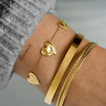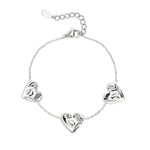 Dit superleuke zilverkleurige armbandje met drie subtiel glanzende hartjes aan een verfijnd zilverkleurig kettinkje is mooi op zichzelf te dragen voor een minimalistische look of te combineren met andere gouden sieraden. Het armbandje is gemaakt van hoogwaardig nikkelvrij, waterproof en hypoallergeen stainless steel (roestvrijstaal) materiaal dat niet verkleurt.
