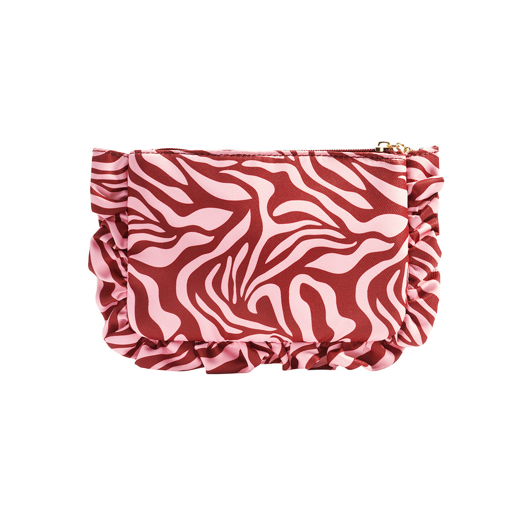 Dit superleuke make-up tasje met rood/roze swirls en schattige rouches is jouw nieuwe go-to accessoire! Ideaal om je make-up, kleine essentials of sieraden in te bewaren en je tas overzichtelijk te houden!