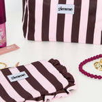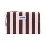 Bewaar je make-up en beauty essentials stijlvol in deze leuke chocoladebruine/roze make-up bag met streep patroon. Het tasje is voorzien van een stevig ritsvak en het compacte formaat ideaal is voor dagelijks gebruik of op reis.