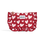 Deze superleuke rode make-up tas met zachtroze hartjes en schattige rouches is jouw nieuwe go-to accessoire! Ideaal om je make-up, kleine essentials of sieraden in te bewaren en je tas overzichtelijk te houden!