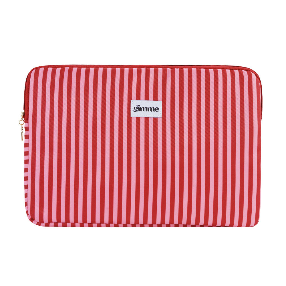 Met deze laptophoes met vrolijk rood/roze streepjes patroon bescherm je je laptop én vervoer je deze ook nog eens in stijl! Deze case biedt bescherming tegen krassen en stoten, terwijl je met de leuke print helemaal in stijl naar je werk of school gaat!