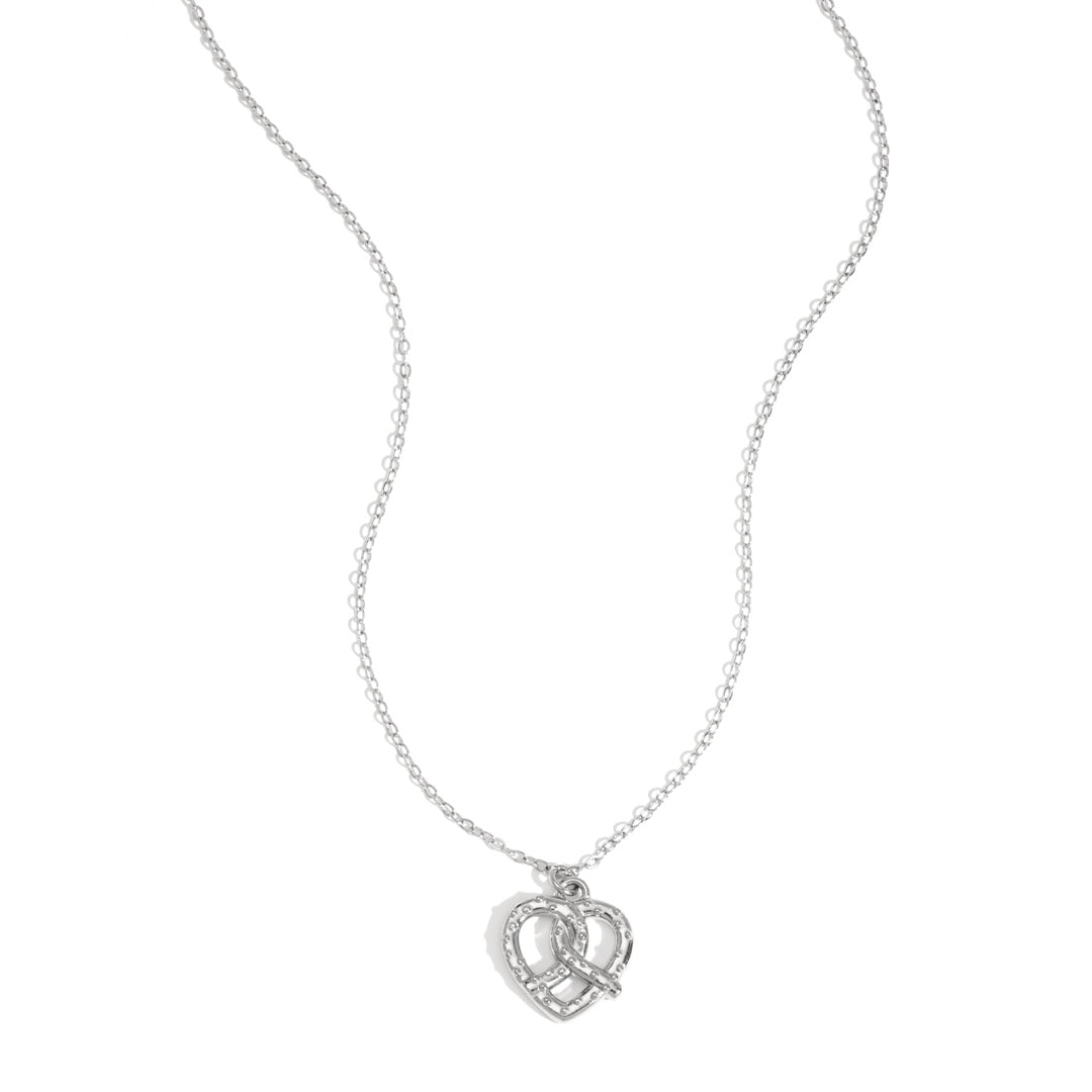 Dit elegante zilverkleurige schakelkettinkje is voorzien van een leuk hart/pretzelvormig hangertje. De ketting is heel fijn licht van gewicht en leuk voor zowel dagelijkse looks als speciale gelegenheden. De ketting is dankzij de verstelbare sluiting te dragen van 38 t/m 43 cm.