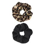 Deze set bestaat uit twee fijne scrunchies: één met gave panterprint en één basic zwarte. Mooi voor een nonchalante staart, een strakke knot of als accessoire om je pols te dragen. Dankzij de zachte stof zijn ze niet alleen mooi, maar voorkomen ze ook dat je haar zal knikken of breken.