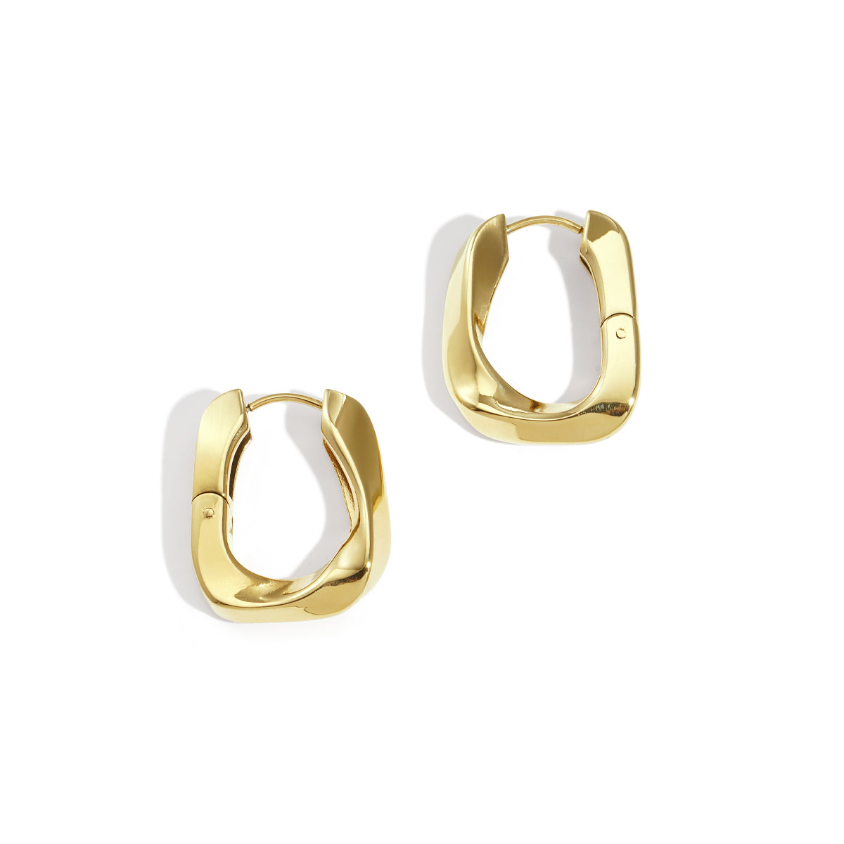 Deze goudkleurige oorbellen combineren strakke lijnen met zachte, organische rondingen en zorgen daarmee voor een mooie, eigentijdse look. De oorbellen zijn licht van gewicht, sluiten mooi aan en zijn een moderne essential voor iedereen die houdt van een clean design met een subtiele twist. De oorbellen zijn gemaakt van hoogwaardig nikkelvrij, waterproof en hypoallergeen stainless steel (roestvrijstaal) materiaal dat niet verkleurt.