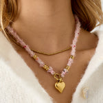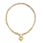 Deze leuke, unieke ketting combineert een beige geweven band met goudkleurige accenten en een glanzend hartbedeltje en is heel mooi te dragen bij zowel casual als feestelijke outfits. De ketting zelf is gemaakt van premium hypoallergeen, waterproof en nikkelvrij stainless steel materiaal dat niet verkleurt.
