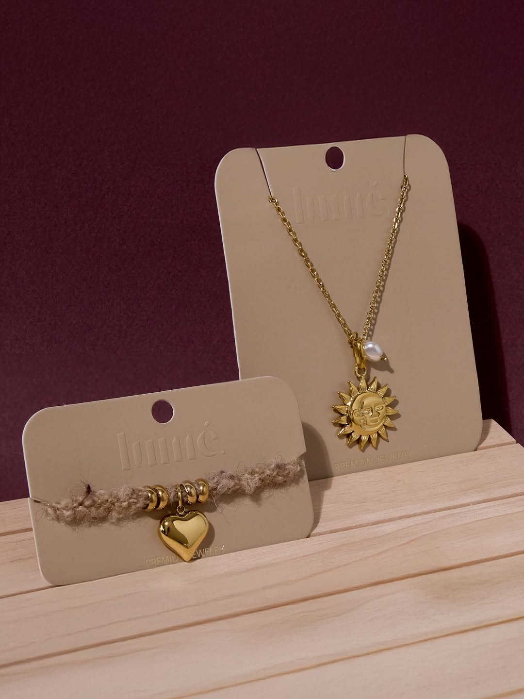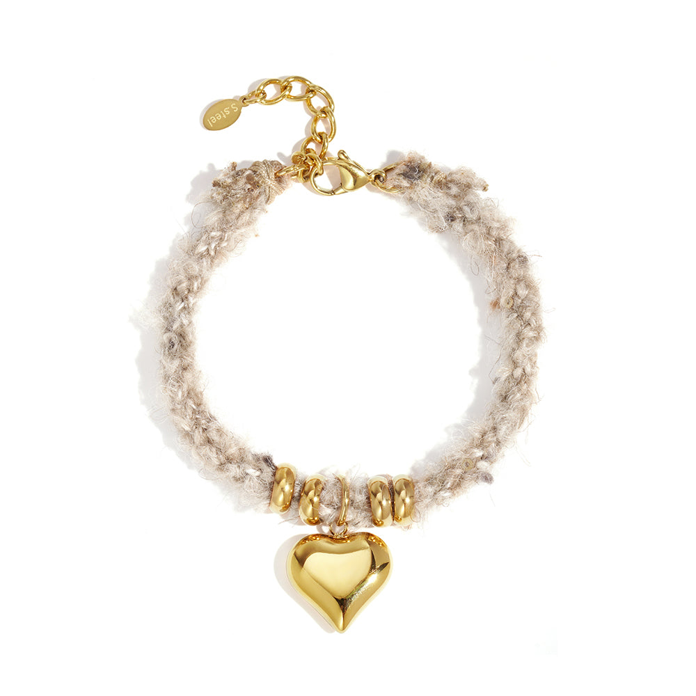Dit leuke, unieke armbandje combineert een beige geweven band met goudkleurige accenten en een glanzend hartbedeltje en is heel mooi te dragen bij zowel casual als feestelijke outfits. Het armbandje zelf is gemaakt van premium hypoallergeen, waterproof en nikkelvrij stainless steel materiaal dat niet verkleurt.