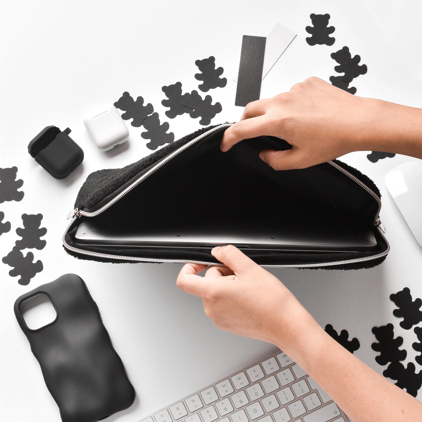 Simpel en classy is deze heerlijk zachte zwarte Teddy Baloo Chic Laptophoes!