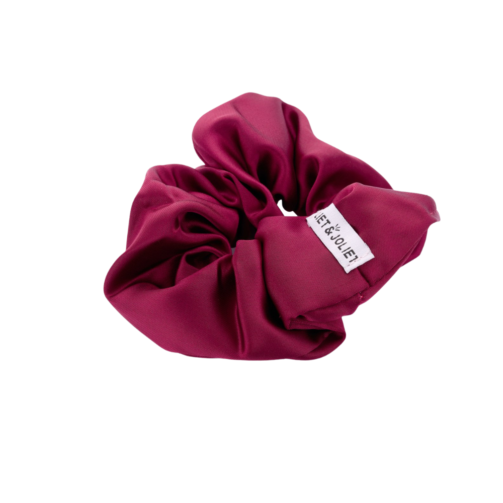 Deze zachte wijnrode scrunchie met satin finish is gemaakt van een soepele stof waarmee je je haar stevig vast kunt zetten zonder te trekken of te beschadigen. Ideaal voor zowel een elegante paardenstaart als een nonchalante messy bun!