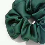 Deze mooie donkergroene satijnen scrunchie geeft je look meteen een luxe touch. De glans en rijke smaragdgroene kleur maken deze erg mooi voor de feestdagen, maar ook voor je everyday hairdo. De zachte stof is fijn voor je haar, helpt wrijving te verminderen en voorkomt knikken. Draag hem in een hoge staart, messy bun of om je pols als accessoire!